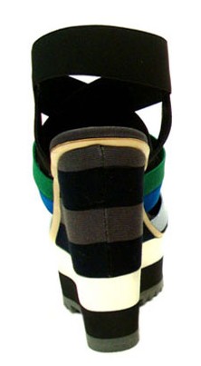 新款蓝绿条纹拼接厚底凉鞋