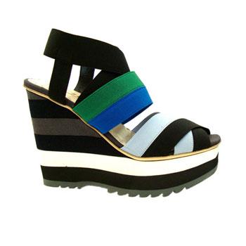温馨提示:1.因拍摄光线及个人电脑萤幕设定,商品可能略有色差,但在正常范围之内。 2.此商品Prada 普拉达2011新款 蓝绿布面拼接超厚弹性楔形底凉鞋1XZ158 3AUU F0L2U性感女鞋,精品女鞋。